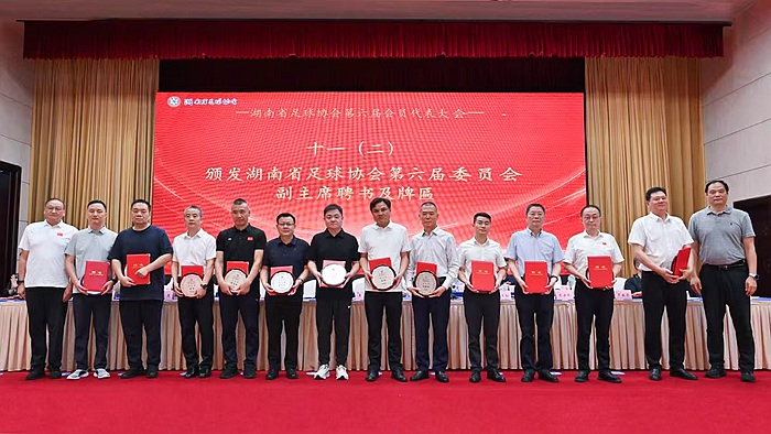 2025年5月28日上午,湖南省足球协会(以下简称"省足协")第六届会员代表大会暨换届大会在长沙隆重召开。湖南省体育局、省教育厅、省民政厅等部门领导莅临现场,省内外200余名会员代表齐聚一堂,共商湖南足球发展大计。大会审议并一致通过省足协第六届委员会工作报告及财务报告,修订了《湖南省足球协会章程》,并选举产生省足协第六届委员会。